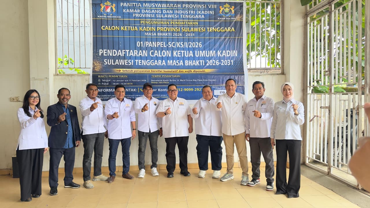 Ia menjelaskan, tahapan pendaftaran calon Ketua Kadin Sultra periode 2026–2031 telah dibuka sejak Januari hingga Februari 2026 dan dilaksanakan secara terbuka sesuai mekanisme organisasi.