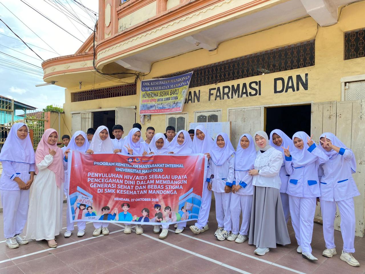 KENDARI–MEDIASEKAWAN.COM.|| Fakultas Farmasi Universitas Halu Oleo (UHO) bergerak aktif melaksanakan Program Kemitraan Masyarakat (PKM) dengan tajuk “Penyuluhan HIV/AIDS sebagai Upaya Pencegahan Dini dalam Membangun Generasi Sehat dan Bebas Stigma.” Program ini menyasar siswa-siswi SMK Kesehatan Mandonga, Kota Kendari, khususnya kelas X jurusan Farmasi Pada Senin, (27/10/25).