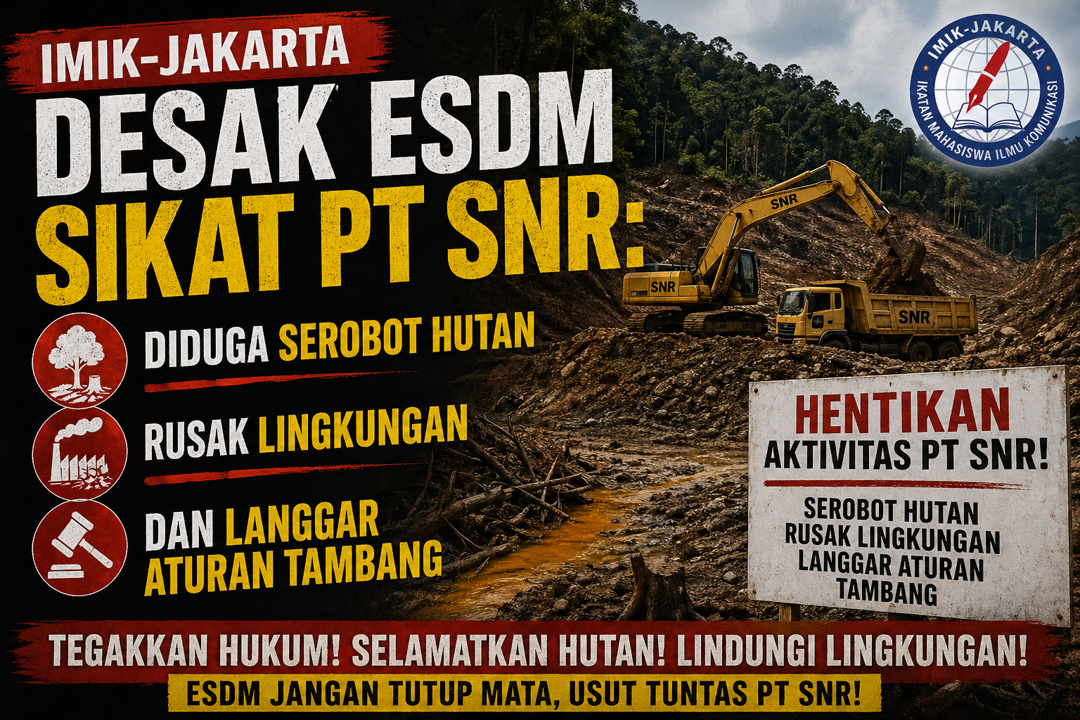 Beranda / Uncategorized / IMIK-Jakarta Desak ESDM Sikat PT SNR: Diduga Serobot Hutan, Rusak Lingkungan, dan Langgar Aturan Tambang!