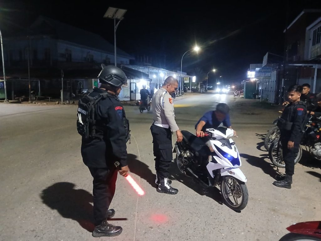 BOMBANA – Kapolsek Lantari Jaya, IPTU Prasetyo Nento, S.H., CPM memimpin langsung pelaksanaan Kegiatan Rutin Yang Ditingkatkan (KRYD) bersama personel Brimob Polda Sulawesi Tenggara dari Posko Taktis Bombana, Sabtu malam (7/2/2026).