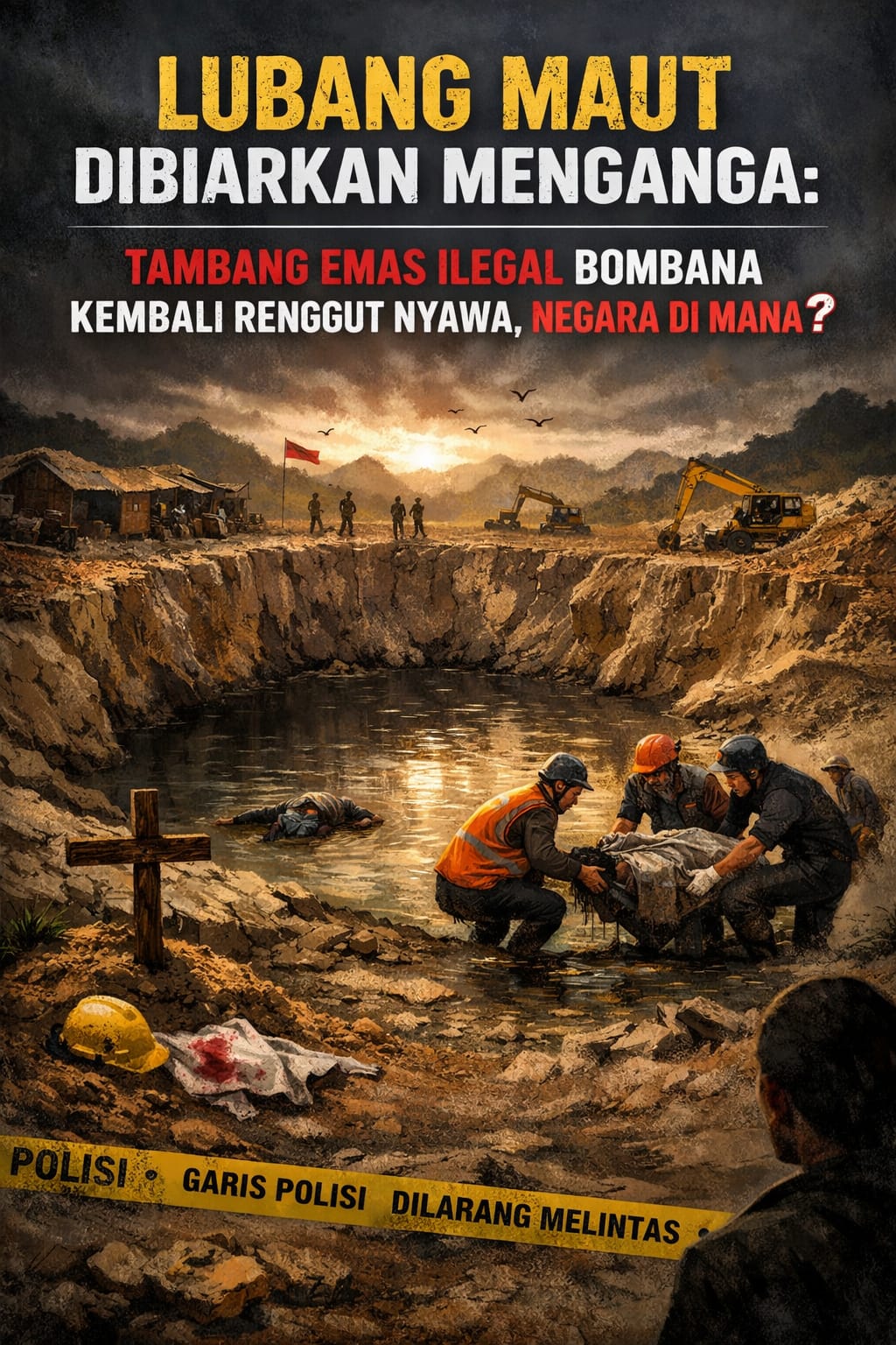 Tambang emas ilegal di Bombana telah lama beroperasi di ruang abu-abu hukum. Minim pengawasan, nihil penindakan tegas, dan seolah luput dari prioritas penegakan hukum. Pertanyaannya kini bukan lagi apa yang terjadi, tetapi mengapa ini terus terjadi tanpa ada yang benar-benar menghentikan?