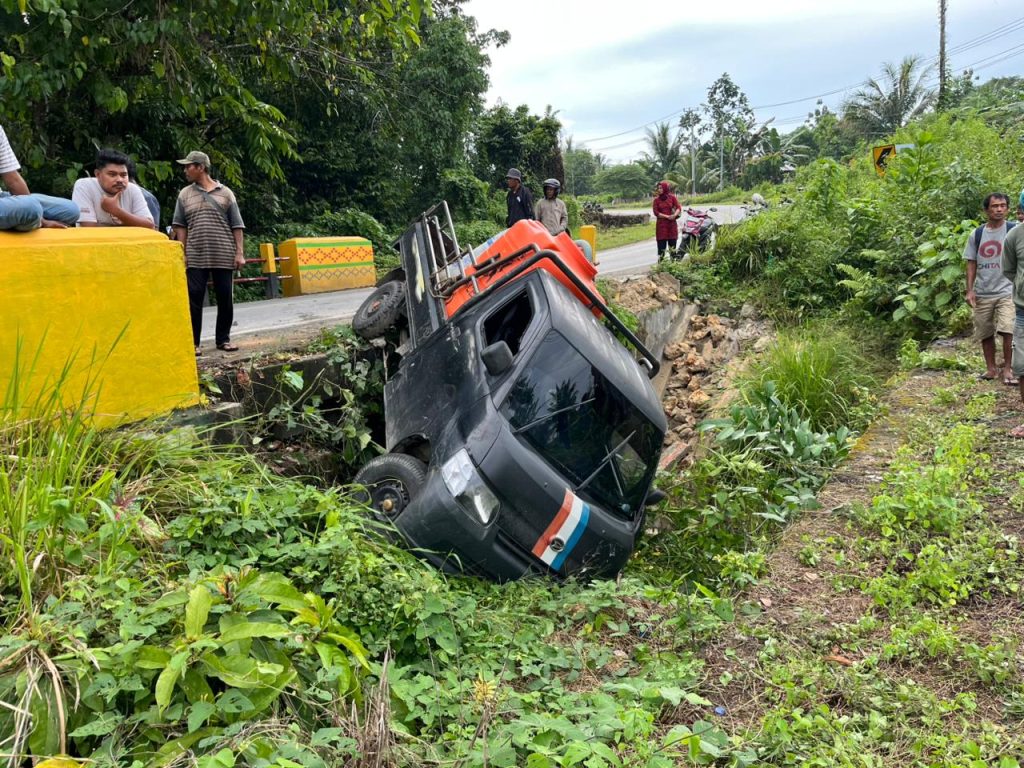 Akibatnya, mobil Suzuki Carry tersebut keluar dari badan jalan dan terjatuh di sisi kiri jalan, tepatnya di area jembatan yang berada di lokasi kejadian.