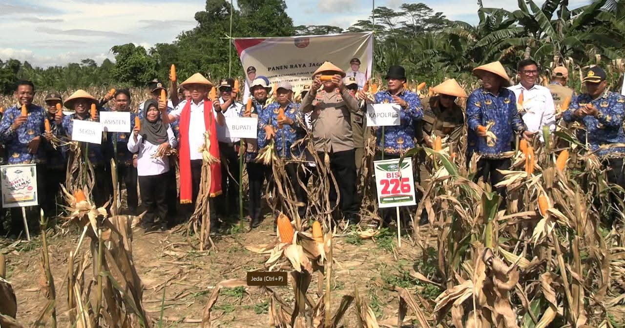 Panen raya tersebut mencerminkan hasil kolaborasi antara pemerintah daerah, aparat kewilayahan, dan masyarakat tani dalam menjaga ketersediaan komoditas pangan strategis, khususnya jagung, yang memiliki peran penting dalam mendukung ketahanan pangan regional maupun nasional.