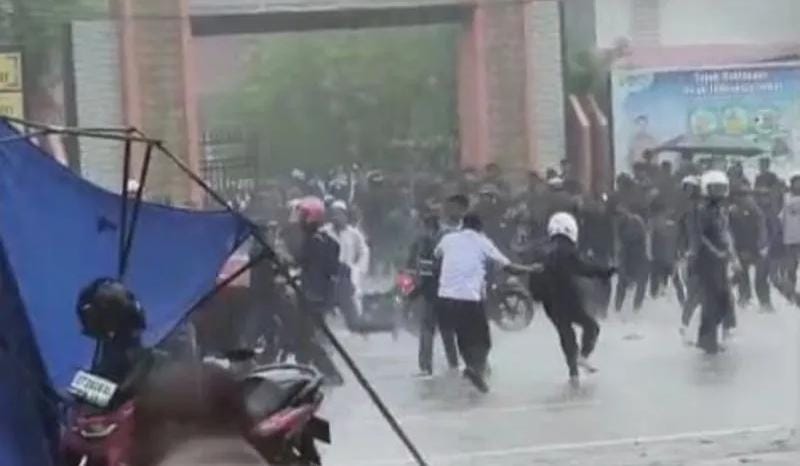 Aksi tawuran antarpelajar SMKN 1 dengan siswa SMKN 2 Kendari terjadi pada Rabu sore saat kondisi hujan deras.