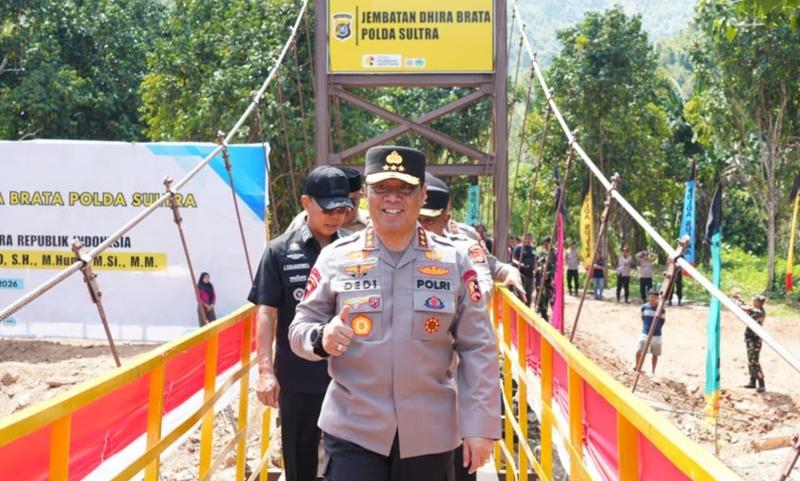 Kendari – Polri telah merampungkan pembangunan 17 jembatan perintis dengan 2 jembatan utama bernama “Dhira Brata” yang berlokasi di Desa Sabilambo, Kabupaten Kolaka dan Desa Silui, Kecamatan Ueesi, Kabupaten Kolaka Timur, Sulawesi Tenggara.