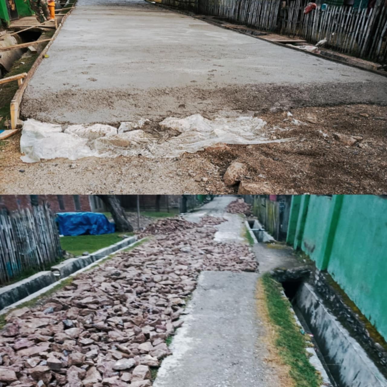 “Kami lihat langsung waktu dikerjakan, tidak semua bagian dipasang batu gunung. Ada bagian yang cuma semen dan pasir. Kalau begini, kekuatan jalan ini patut dipertanyakan,” imbuhnya.