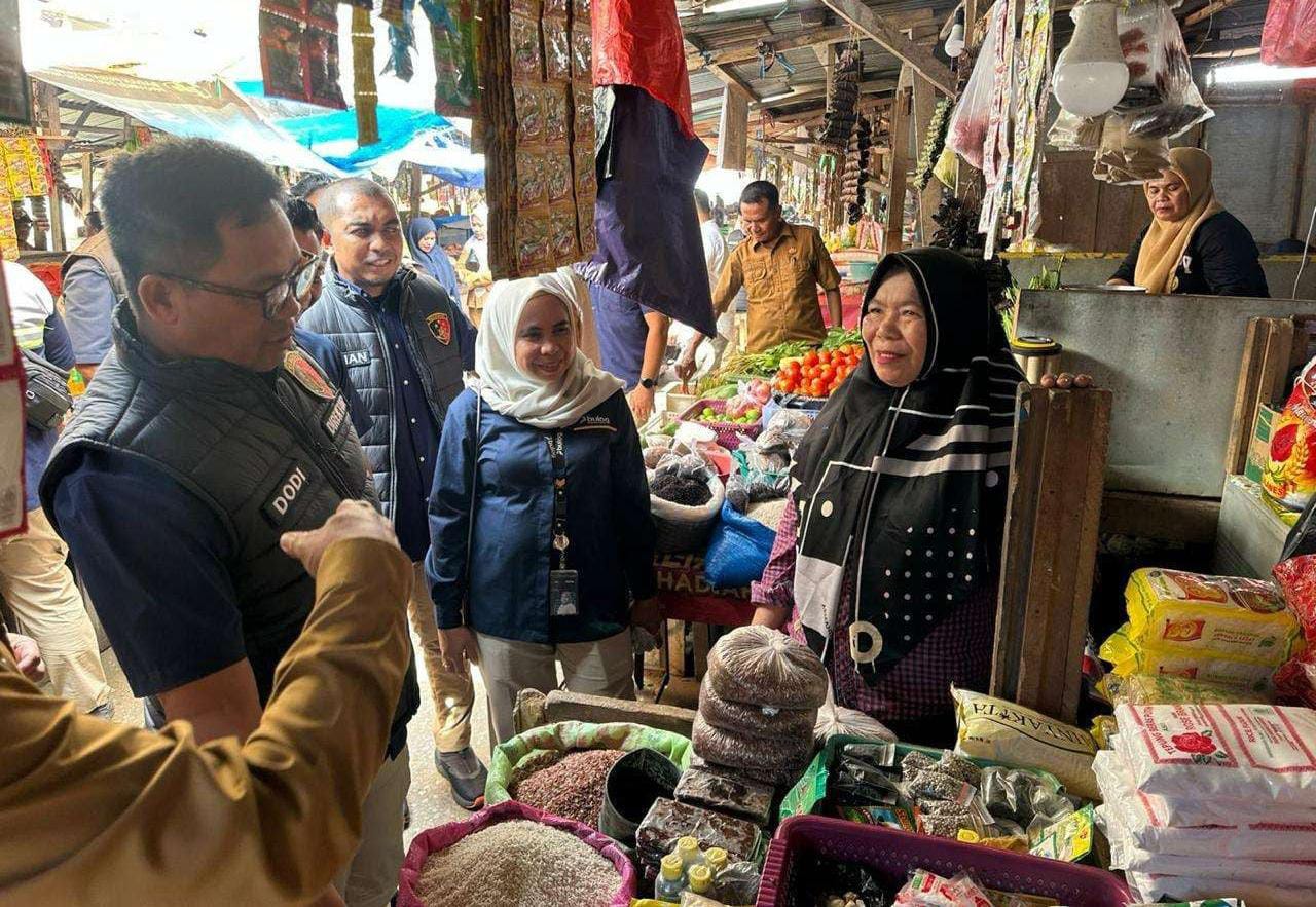 Petugas juga berdialog dengan para pedagang untuk menggali informasi terkait kelancaran distribusi dan potensi kendala pasokan.