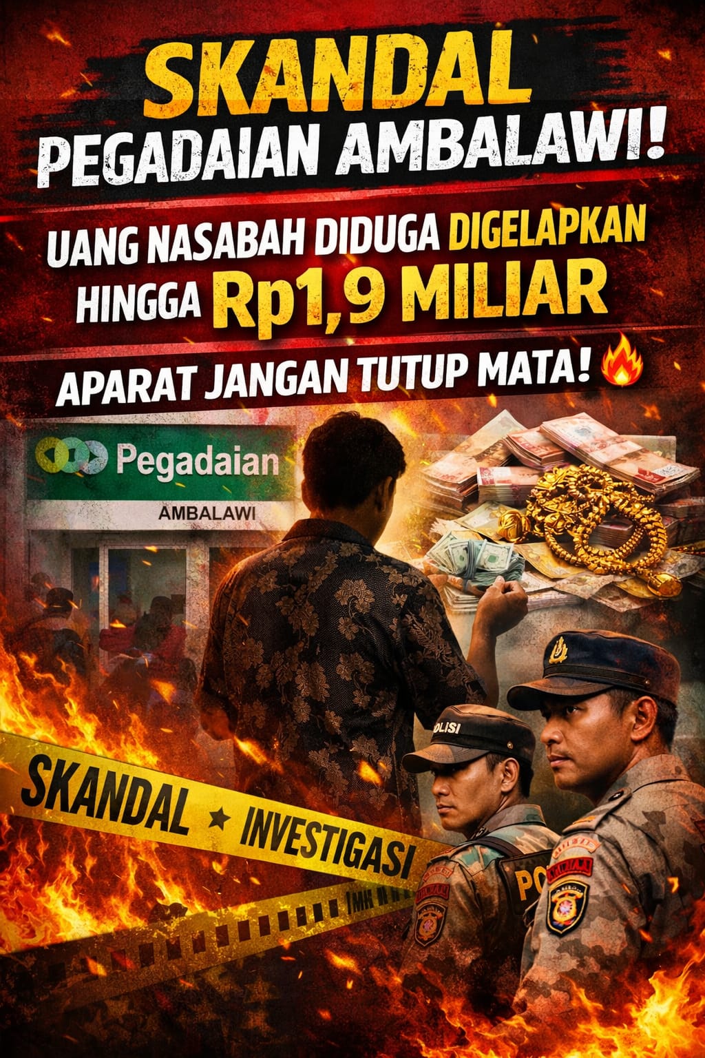 BIMA ,MEDIA SEKAWAN.COM. – Dugaan penggelapan dana di Unit Pelayanan Cabang (UPC) Pegadaian Ambalawi kini meledak menjadi skandal serius yang mengguncang kepercayaan publik. Ketua Himpunan Mahasiswa Ambalawi (HIMAWI) Yogyakarta, Majmuadin, mendesak Kepolisian Resor Bima Kota untuk tidak bermain-main dan segera membongkar tuntas praktik yang dinilai merugikan rakyat.