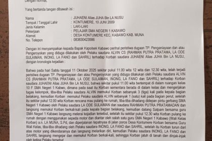 Lasehao, 20 Oktober 2025,mediasekawan.com– Sebuah laporan pengaduan terkait dugaan tindak pidana penganiayaan dan atau pengeroyokan telah diajukan ke Kepolisian Sektor Kabawo pada tanggal 11 Oktober 2...